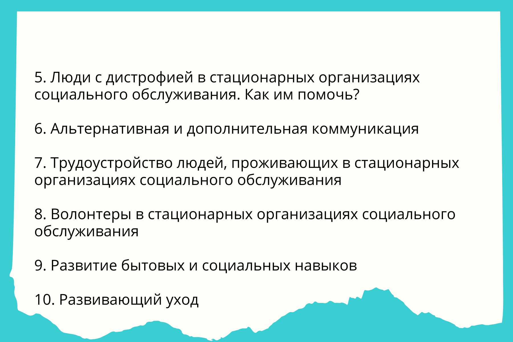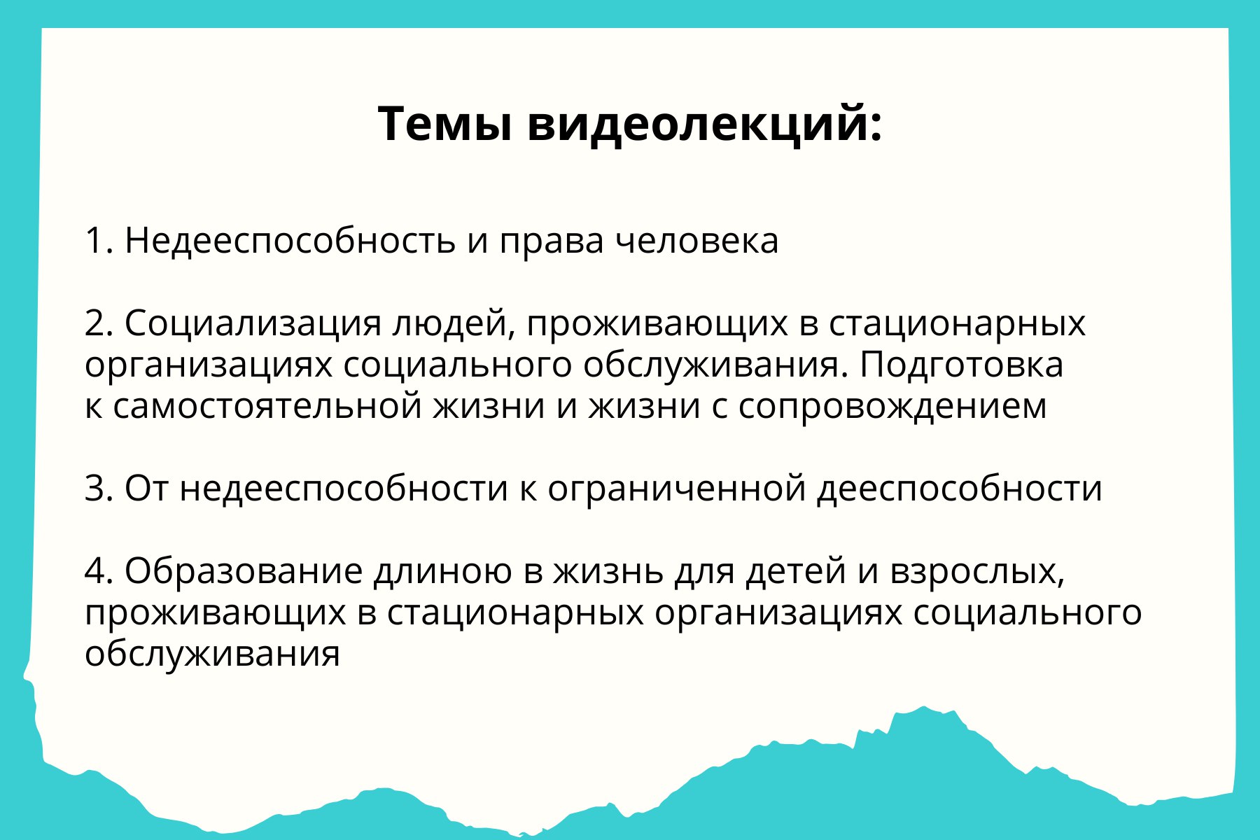 10 видеолекций о том, как можно улучшить жизнь людей в организациях стационарного социального обслуживания (то есть в интернатах), подготовили Центр лечебной педагогики и Экспертно-методический центр «Особое детство» (ЭМЦ) по согласованию с Минтрудом России.
