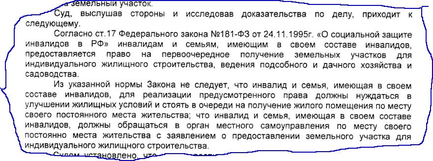 судебные инстанции по вопросу предоставления ЗУ семье ребенка-инвалида по ИЖС в